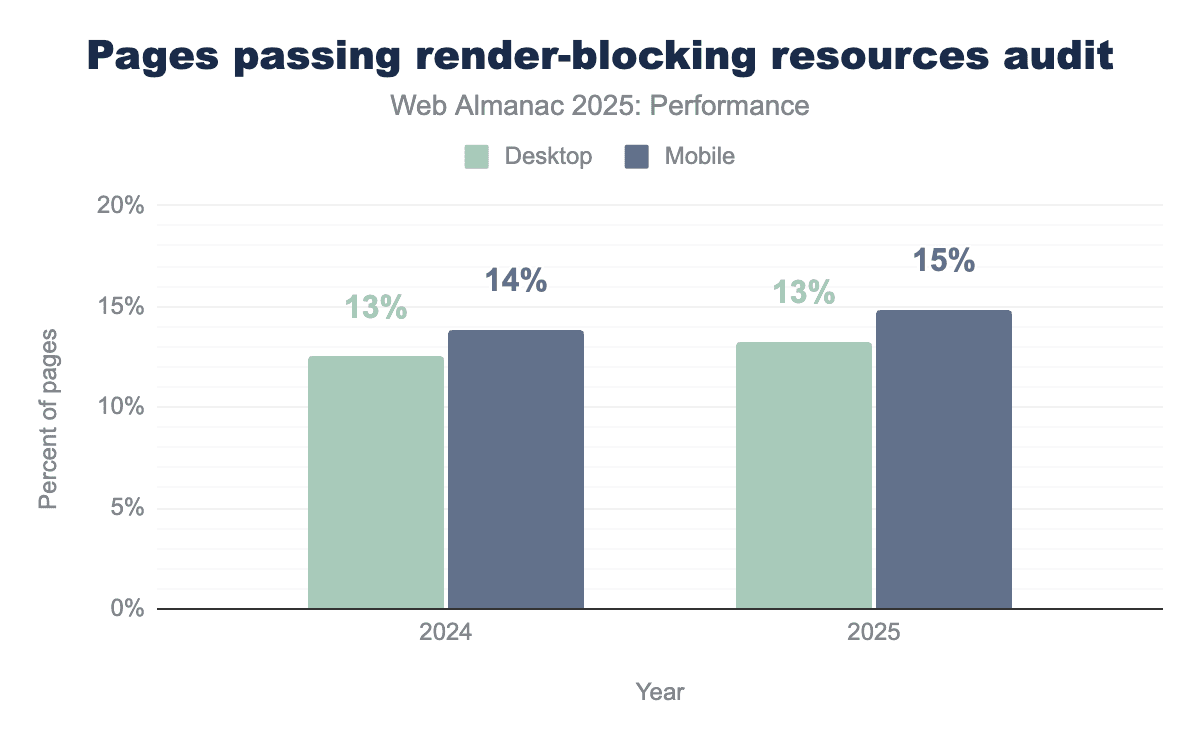 Over the same period, the proportion of pages passing the “render-blocking resources audit” remained flat on desktop and increased by 1% on mobile.