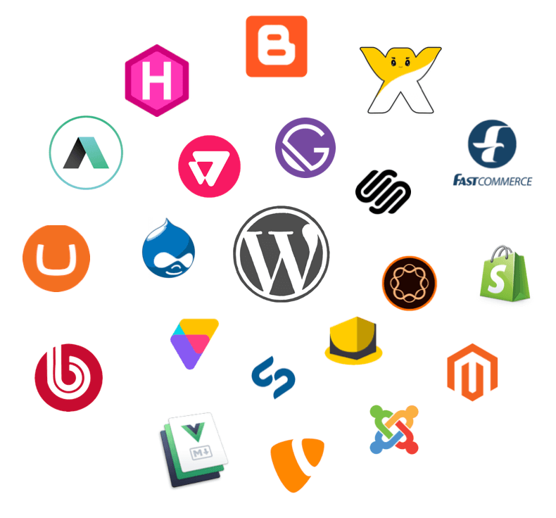 CMSについて考えるとき、ウェブ上にコンテンツを公開するためのプラットフォームを提供するシステムの実行可能性に関わるすべてのコンポーネントを考慮に入れる必要があります。これらのコンポーネントはすべて、CMSプラットフォームを取り巻くエコシステムを形成しており、ホスティングプロバイダ、拡張機能開発、開発代理、サイトビルダーなどが含まれています。このように、CMSというと、通常はプラットフォームそのものとそれを取り巻くエコシステムの両方を指すことになります。