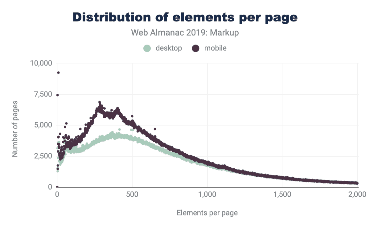 2019年7月の時点で、HTTP Archiveは、約440万のデスクトップホームページと約530万のモバイルホームページのDOMで使用されているすべての要素名の収集を開始しました。 (方法論の詳細を御覧ください)