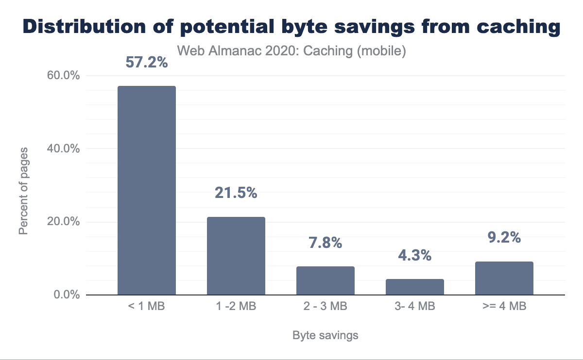 キャッシュを追加することで恩恵を受けることができるサイトのうち、5分の1以上のサイトが2MB以上もページの重量を減らすことができます。