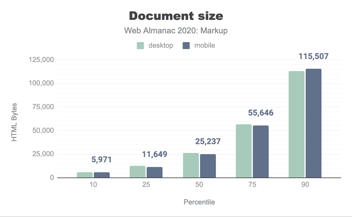 • 最大のドキュメントは61.19 MB で、Web Almanacの中でも独自の分析と章立てが必要なほどです。