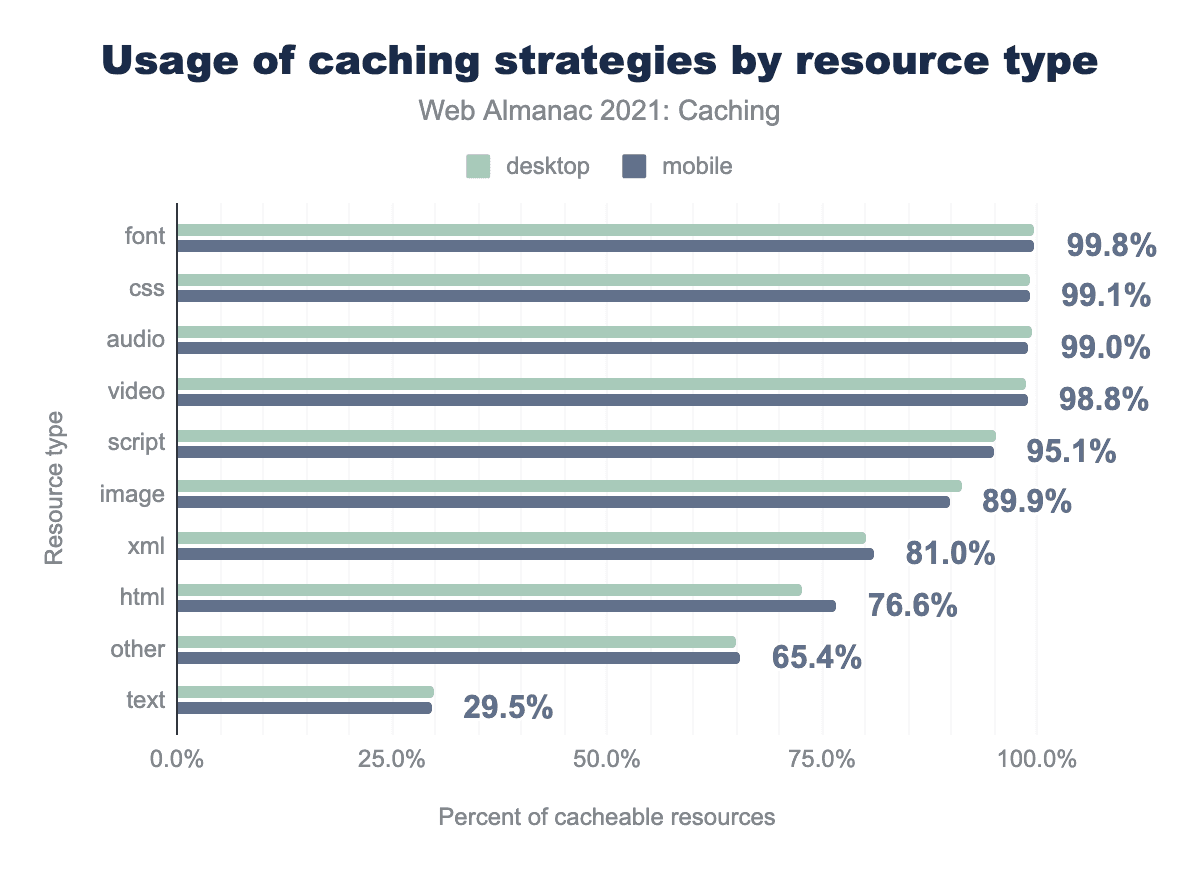 とはいえ、モバイル体験のための最適化を続けていても、キャッシュ可能なデスクトップリソースの潜在的な量は、モバイル用のリソースよりわずかに多いままであることは興味深いことです。