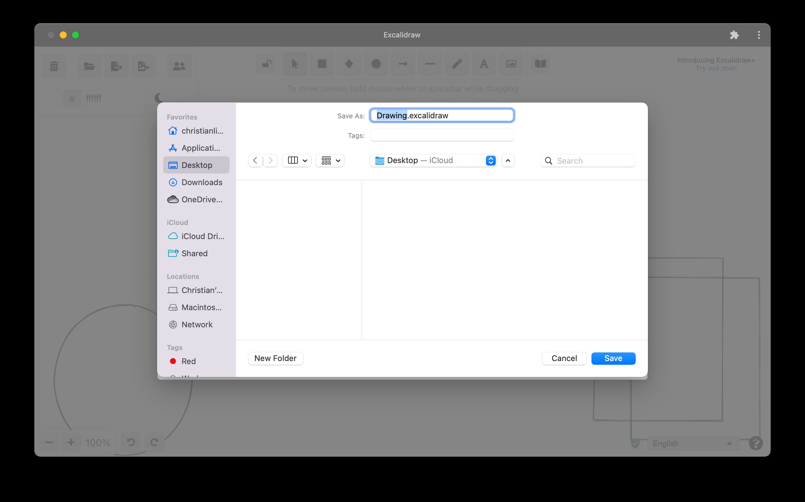 図14.5. Excalidraw PWAは、ファイルシステムアクセスAPIを使用して、内蔵の保存ダイアログからローカルファイルシステムに画像を保存します。