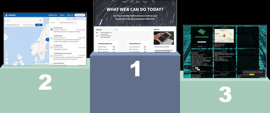 2. 次点は、スウェーデンの警察告知を表示するPolisNotis PWAです。PWA関連のリンクをクリックすると必ず新しいウィンドウが開くように定義する宣言型リンクキャプチャAPIなど、10個のAPIを使用しています。WebシェアAPIはソースコードで使用されていますが、共有機能はUIに公開されていません。また、Badging APIを利用して、新しいお知らせがあった場合にアプリアイコンを通じてユーザーに注意を促しています。
