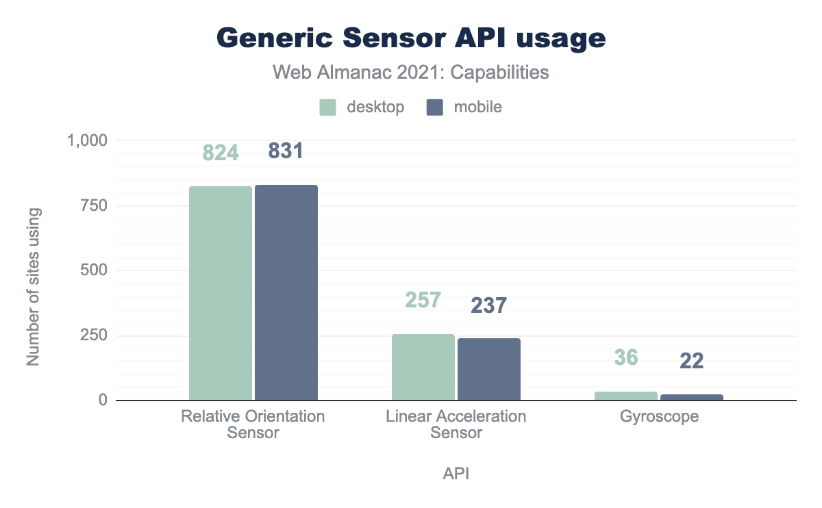 図14.17. デスクトップおよびモバイルウェブサイトでの汎用センサーAPIの使用状況。
