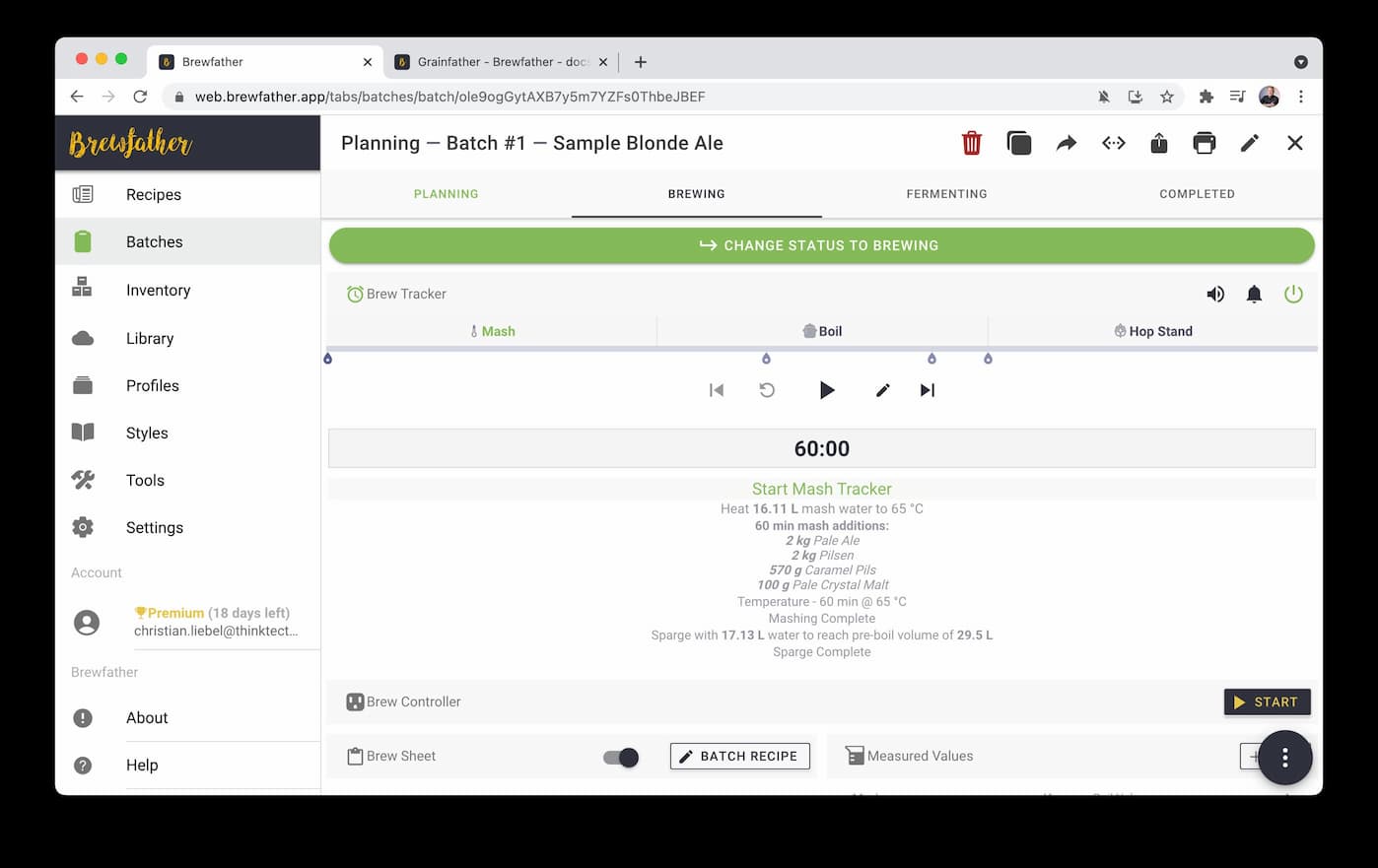 図14.14. Brewfatherアプリは、Webブルートゥースを利用してレシピをBrewコントローラーに送信します。