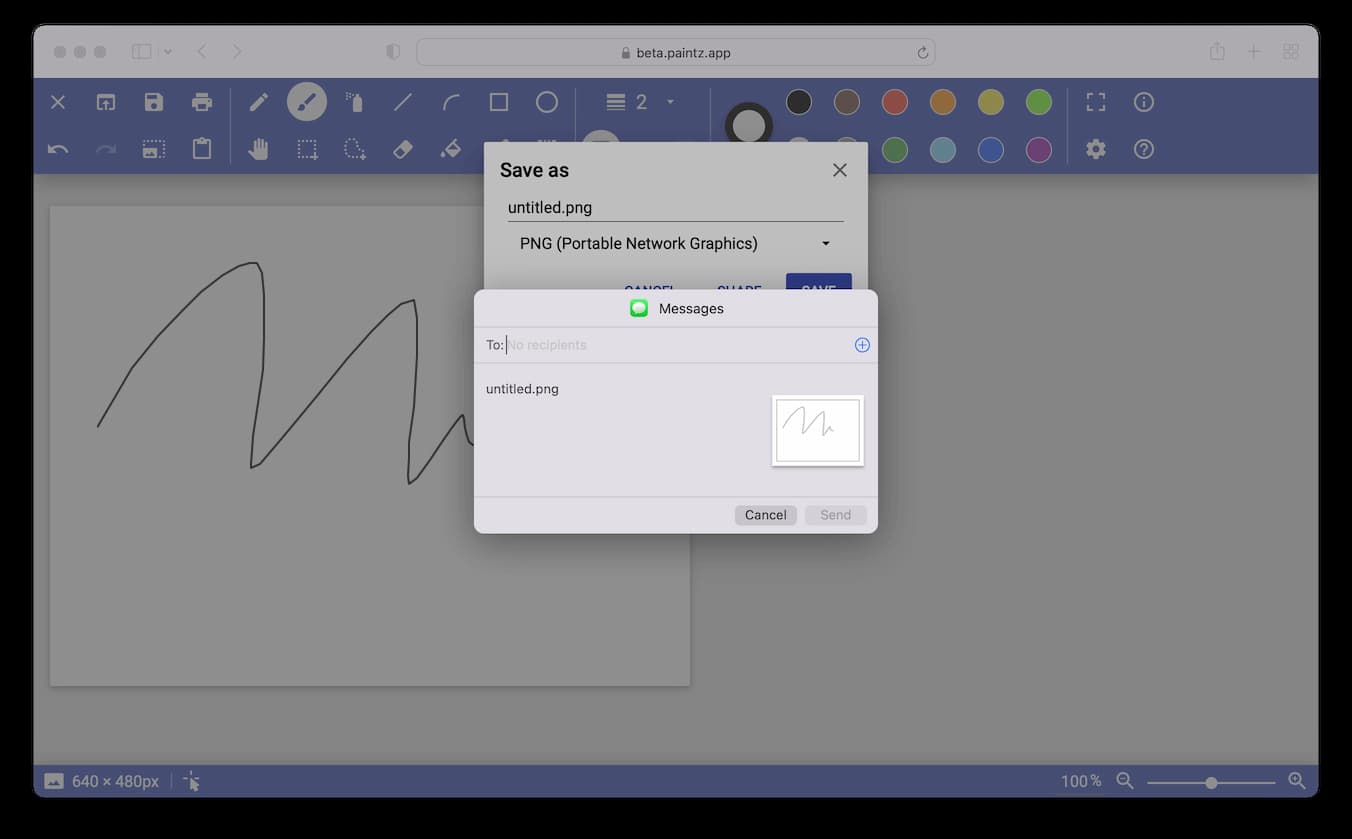 PaintZのベータ版では、WebシェアAPIを使用してローカルアプリケーションとドローイングを共有しています。