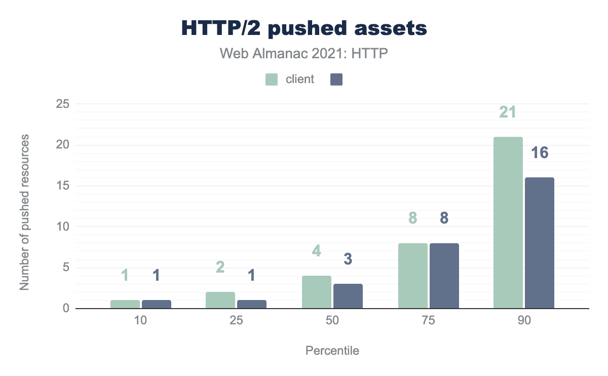 HTTP/2が野放しになって数年、HTTP/2の意図のいくつかはまだ実現されていない。たとえば、昨年、私たちは、HTTP/2プッシュに別れを告げるかどうかという問いを提起しました。今年は、2021年のデータを見ることで、より確信を持ってこの問いに答えることを目指しています。これらの欠点が明らかになるにつれて、HTTPの次のイテレーションであるHTTP/3で対処されたり省略されたりしています。