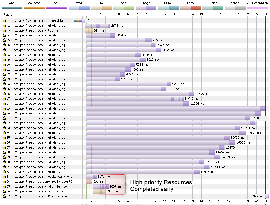 HTTP/2が導入されて以来、優先順位付けはウェブのさまざまな部分で矛盾なく実装されています。Andy Davisは、この矛盾が、ウェブ上のユーザーに最適とはいえない体験をもたらす可能性があることを発見しました。これは、サーバーが優先順位付けを無視して、先着順でサービスを提供することが多いからです。実際、Andyの研究は、主要なCDNの多くがHTTP/2の優先順位付けを正しく実装していないことを強調しています。これには、人気のあるクラウドロードバランサーも多数含まれています。2021年のデータでは、優先順位付けを正しく実装しているCDNはわずか6社で、例年と同様の調査結果となっています。これには、Akamai、Fastly、Cloudflare、Automattic、section.io、Facebook独自のCDNが含まれています。