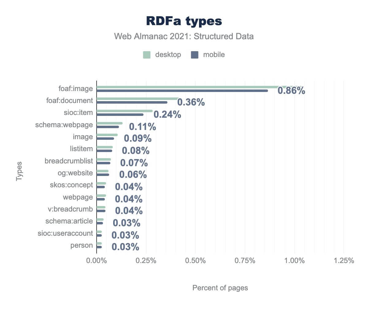 Drupal CMSの古いバージョンでは、デフォルトで typeof="foaf:image"foaf:document マークアップがHTMLに追加されているため、この結果では foaf マークアップが目立つと思われます。