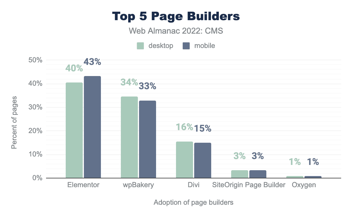 ページビルダーデータの追跡を開始したことで、今後の版では、年ごとのページビルダーの採用状況の変化を評価し、それらの変化がWordPress全体のCMSとしてのパフォーマンスにどのように関連しているかを調べる機会が得られます。