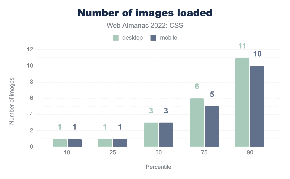 ページあたりのスタイルシート数は2021年とほぼ同じで、50パーセンタイル台でモバイルが1つ増えています。