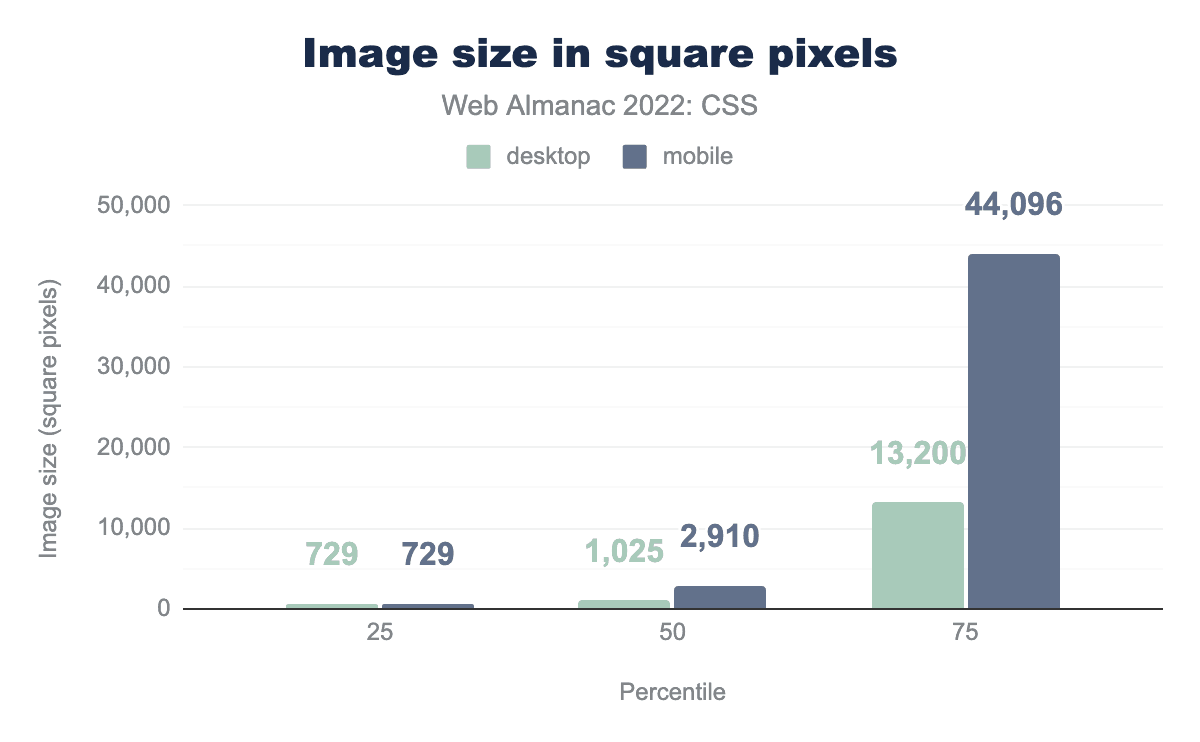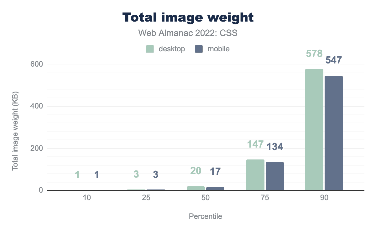 25パーセンタイルが1ポイント下がった他は、各パーセンタイルでわずかながら増加した。90パーセンタイルでは、7%近く増加し、2020 と 2021 の間で見られた増加と同様の増加でした。モバイル用のスタイルシートは、デスクトップ用に提供されるスタイルシートよりもわずかに小さいままです。