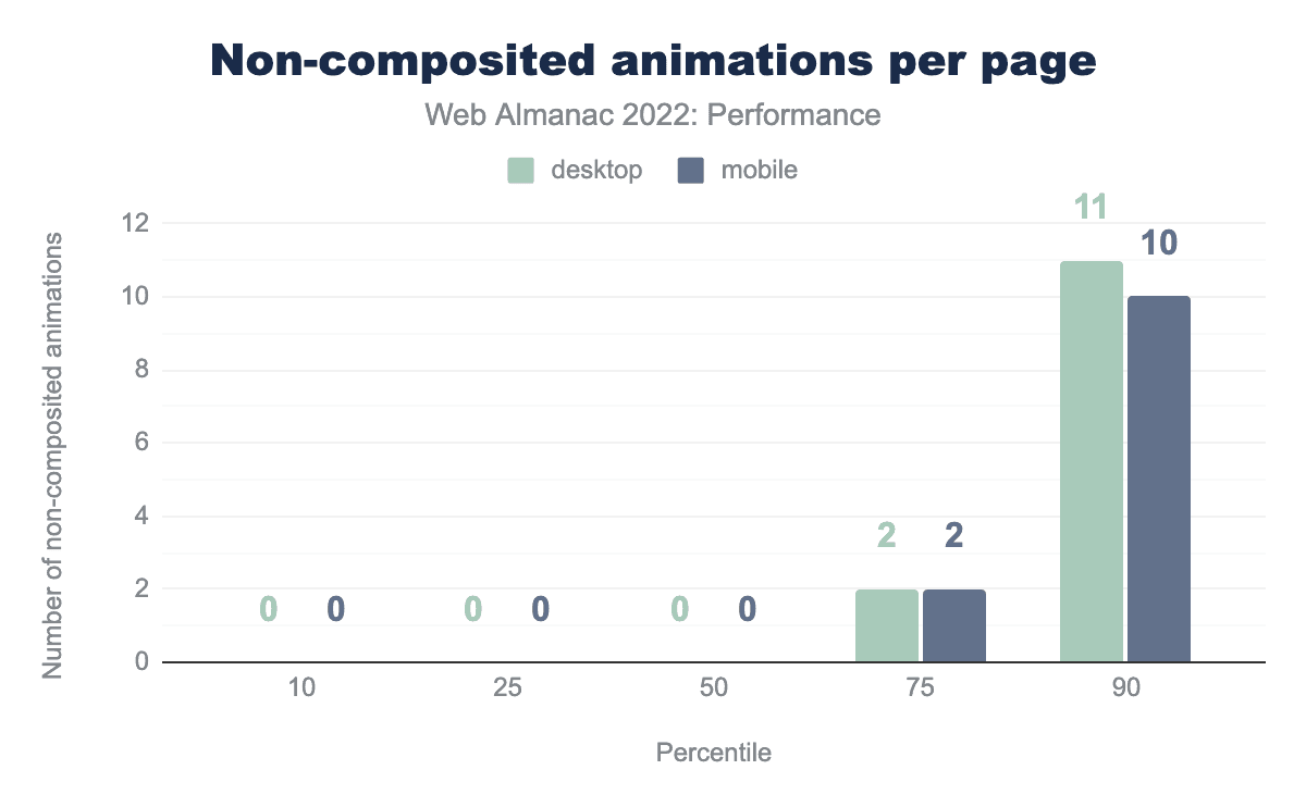 上記の分布から、ほとんどのページはこのタイプのアニメーションを使用しておらず、使用しているページも控えめに使用していることがわかります。75パーセンタイルで、ページはこれらを2回使用します。