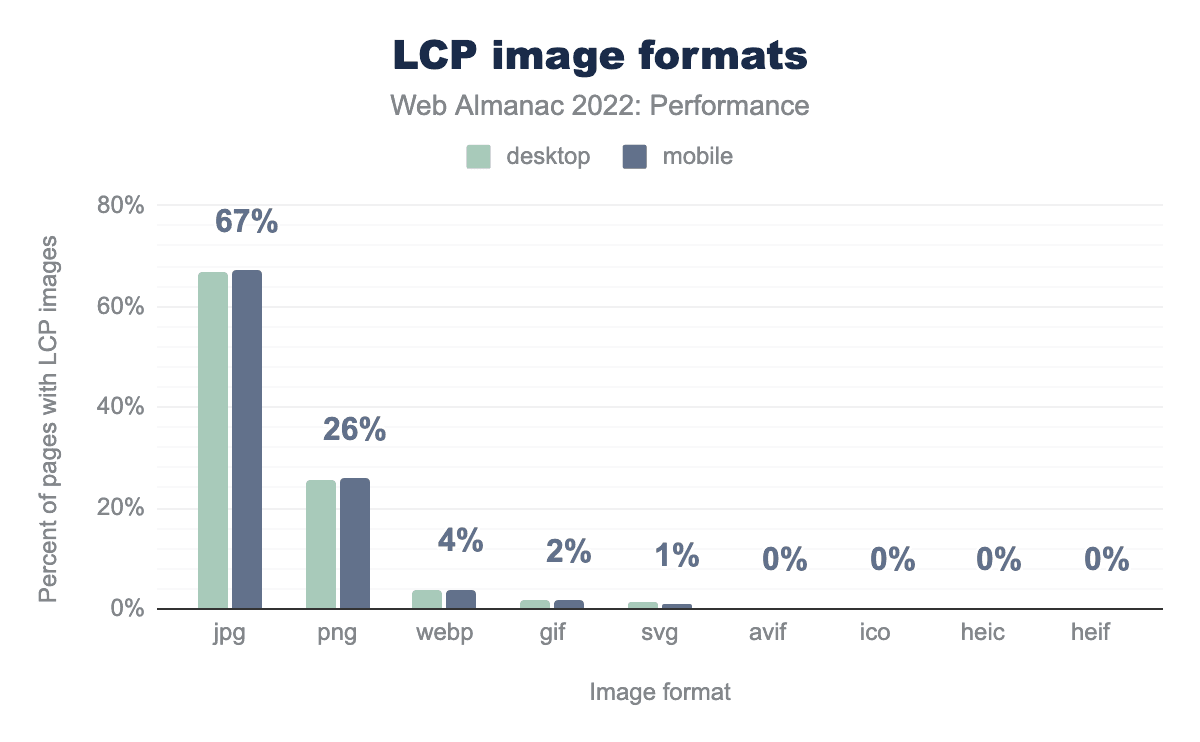このセクションのパーセンテージは、すべてのページではなく、img要素がLCPであるページのみに基づいています。参考までに、これはページの42%を占めることを思い出してください。