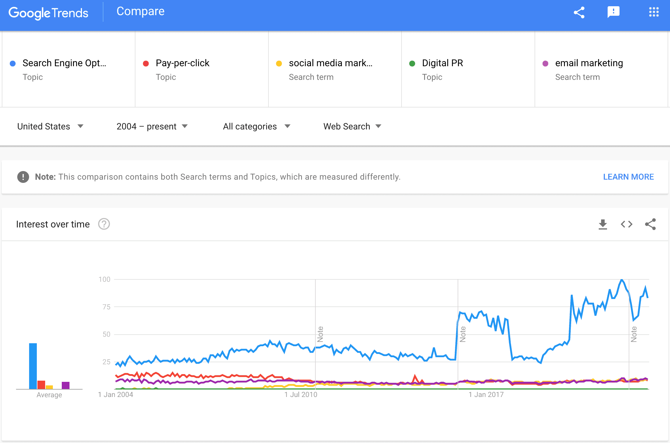 検索エンジン最適化(SEO)は、ウェブサイトやページの可視性を向上させ、検索エンジンの検索結果で上位に表示されるようにするためのデジタル技術です。多くの場合、技術的な設定、コンテンツの作成、リンクの獲得を組み合わせ、検索者のクエリと意図に対する関連性を向上させることを目的としています。SEOの人気は高まり続け、もっとも普及しているデジタルマーケティングチャネルのひとつとなっています。