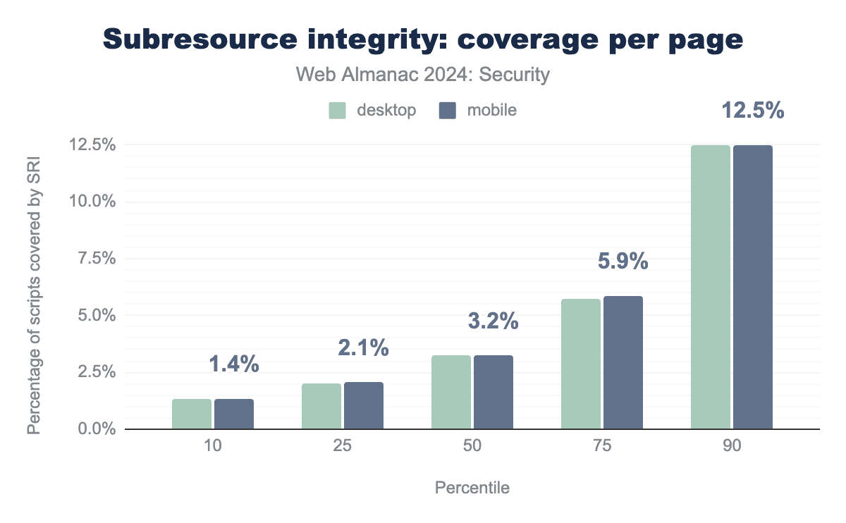 コンテンツセキュリティポリシーは<meta>タグを使用して定義できますが、そのframe-ancestorsおよびsandboxディレクティブはこのコンテキストではサポートされていません。それにもかかわらず、私たちの観察によると、デスクトップで<meta>タグのCSPを使用するページの1.70%、モバイルで1.26%が、誤って<meta>タグでframe-ancestorsディレクティブを使用していました。これは、許可されていないsandboxディレクティブでははるかに低く、0.01%未満で定義されていました。